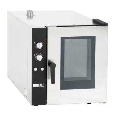 Whether you’re baking cakes or roasting meat, the reliable Buffalo convection oven is a high capacity option for any professional kitchen. Able to fit up to five full-size (1/1 GN) gastronorm trays inside, the oven provides plenty of space for your dishes.