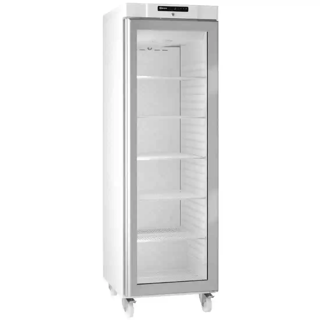 This first class refrigerator is used for the chilled display of food and drinks. It maintains optimum product quality by sustaining the temperature using fan assisted cooling and a double glazed glass door. It comes as standard complete with a lock, fluorescent internal light and 6 adjustable white shelves, making it ideal for use in shops, sandwich bars and service stations.