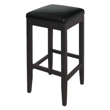 Classic Rubber Wood High Bar Stool with Black Diamond Seat (Pack of 2)