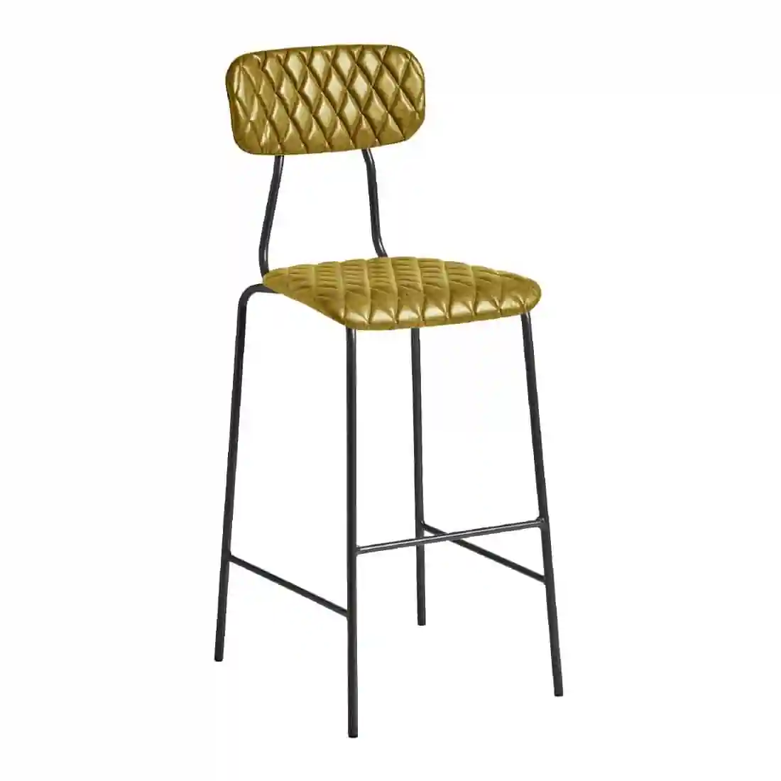 This Kara bar stool is beautifully upholstered in the finest vintage gold faux leather and finished with distinctive diamond stitching. Complementing its sophisticated appearance is a powder-coated raw steel frame which gives it a chic industrial style. The Kara bar stool is also stackable, providing easy and space-saving storage when not in use.