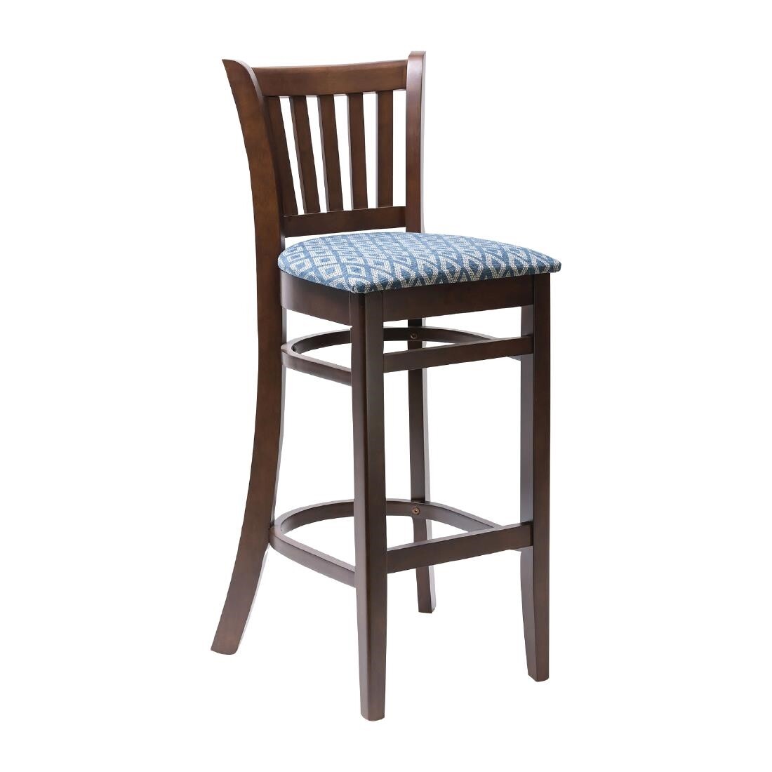 Manhattan Dark Walnut Bar Chair with Blue Diamond Padded Seat - Barstools