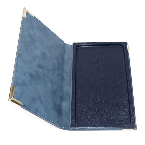 The Bonded Leather Change Holding Bill Presenter measures 185mm x 127mm inside and is available in a range of classic colours. The outer material of this bill presenter is made from extremely high quality bonded leather, and comes with 4 gilt corners for added protection against general wear and tear.