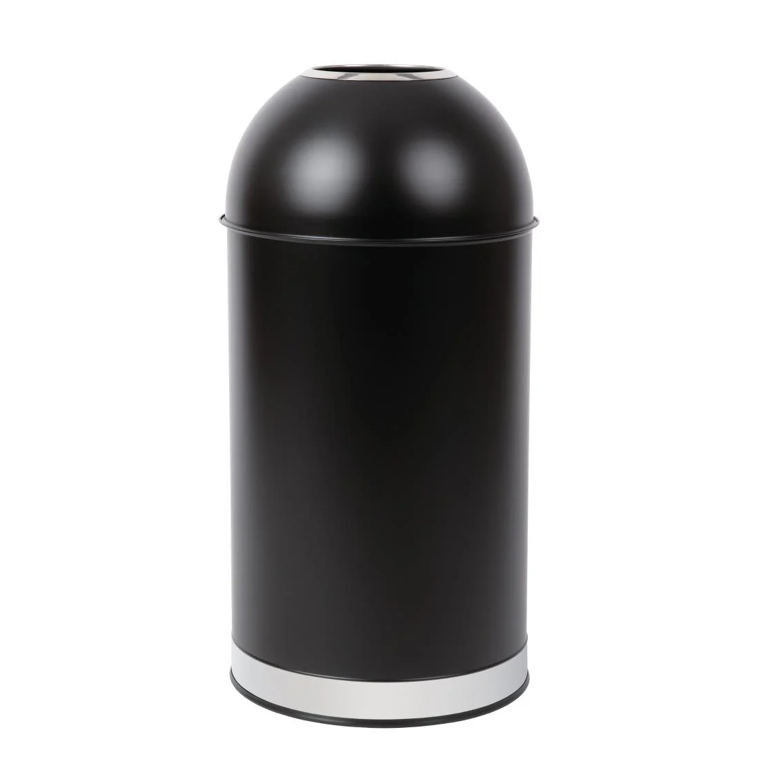 Attractive matte black powder coated bin with smaller opening and complete outer body cover.