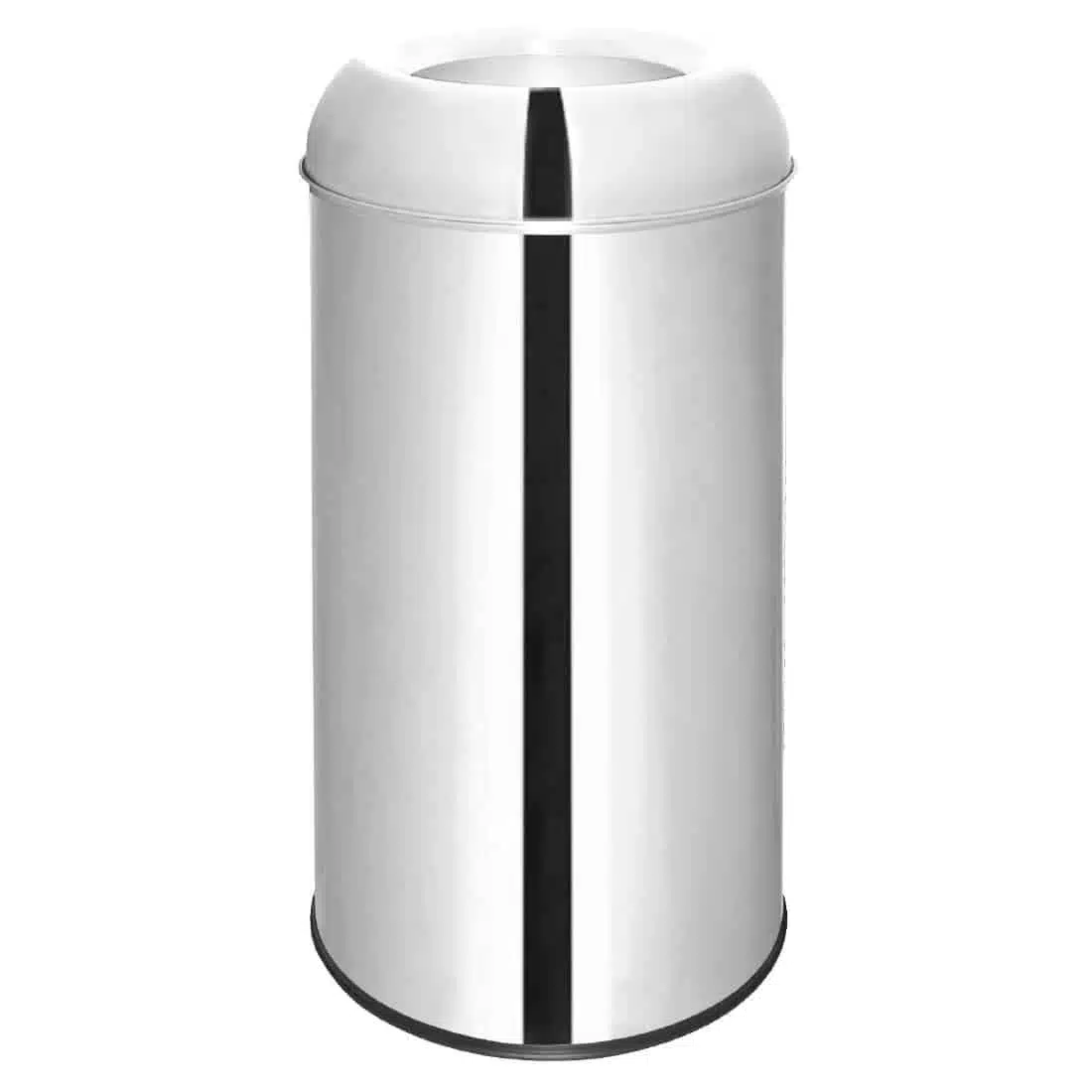 “Stainless steel bin with open lid, ideal for use in front of house areas such as coffee shops.