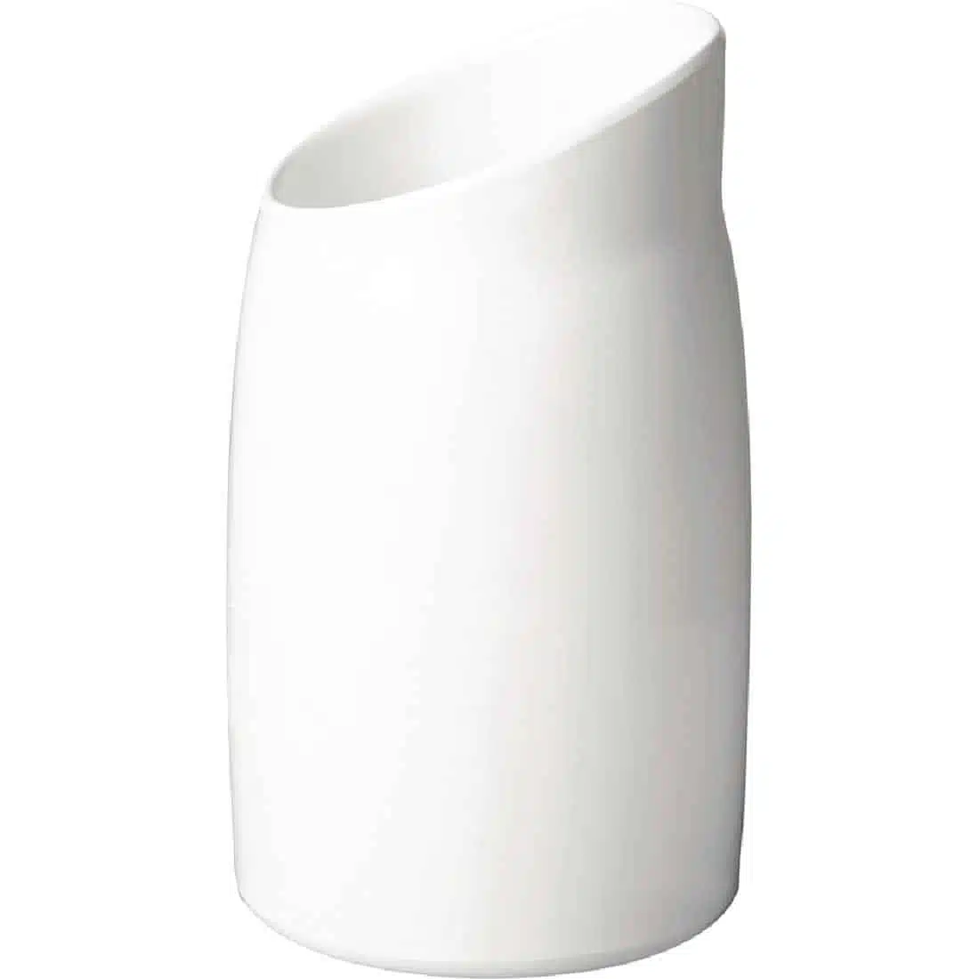 Modern dressing pot with slanted rim, ideal for presenting sauces at the buffet. 1 litre capacity.