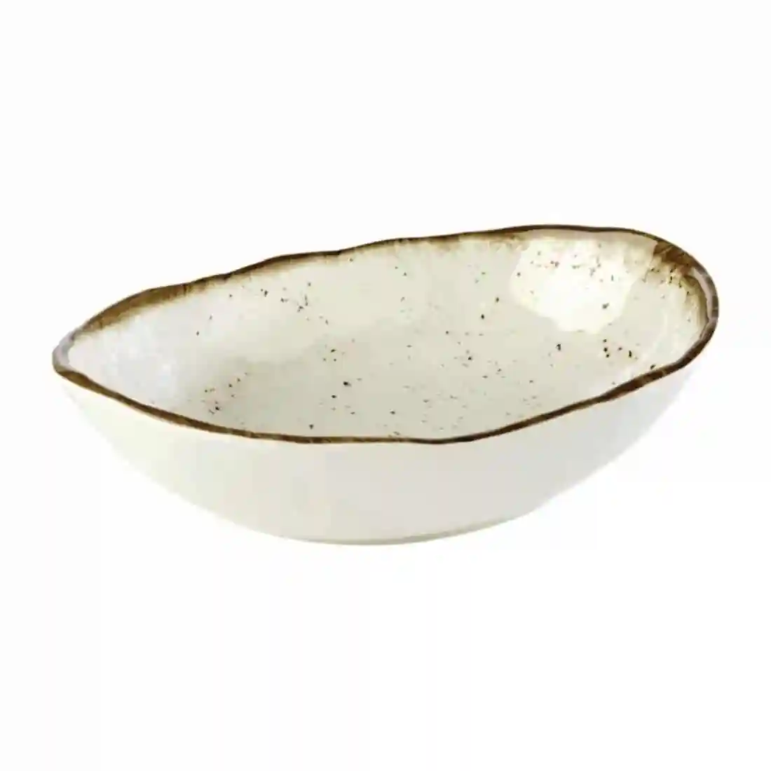 What alternatives to ceramic plates are there? Well, it’s easy to move away from conventional ceramic tableware and still offer diners a bowl which looks and feels fantastic, thanks to this 280mm long bowl from APS. Featuring a deliberately subtly flecked white glaze and an attractive brown rim, this brilliantly rustic and traditional bowl is ideal for giving your food a natural and earthy frame. Suitable for dishwashing and microwaving, this 280mm long bowl is incredibly strong and durable.