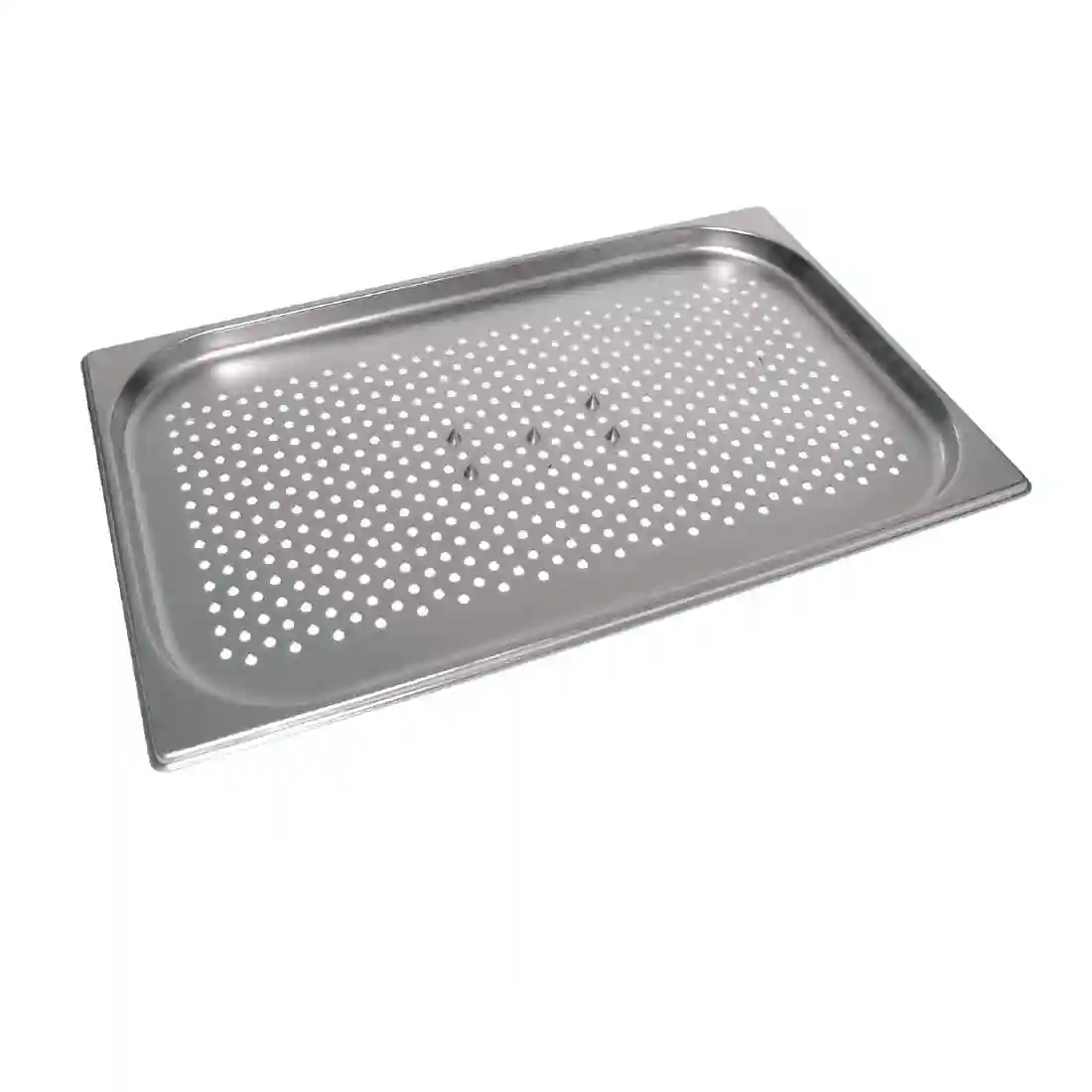 This meat dish is the perfect piece of equipment to carve meat on. The spikes ensure the meat is held firmly in place while being carved, reducing the risk of your knives slipping and causing injury. The perforations in the bottom of the dish allow meat juices to run through the dish and be collected in a second pan (not included). The raised edges of the dish mean any juices not caught by the perforation will not overflow and contaminate your workstation. Constructed from high-quality stainless steel, this dish is immensely durable for a long-lasting life in your kitchen, saving you money on buying replacements.