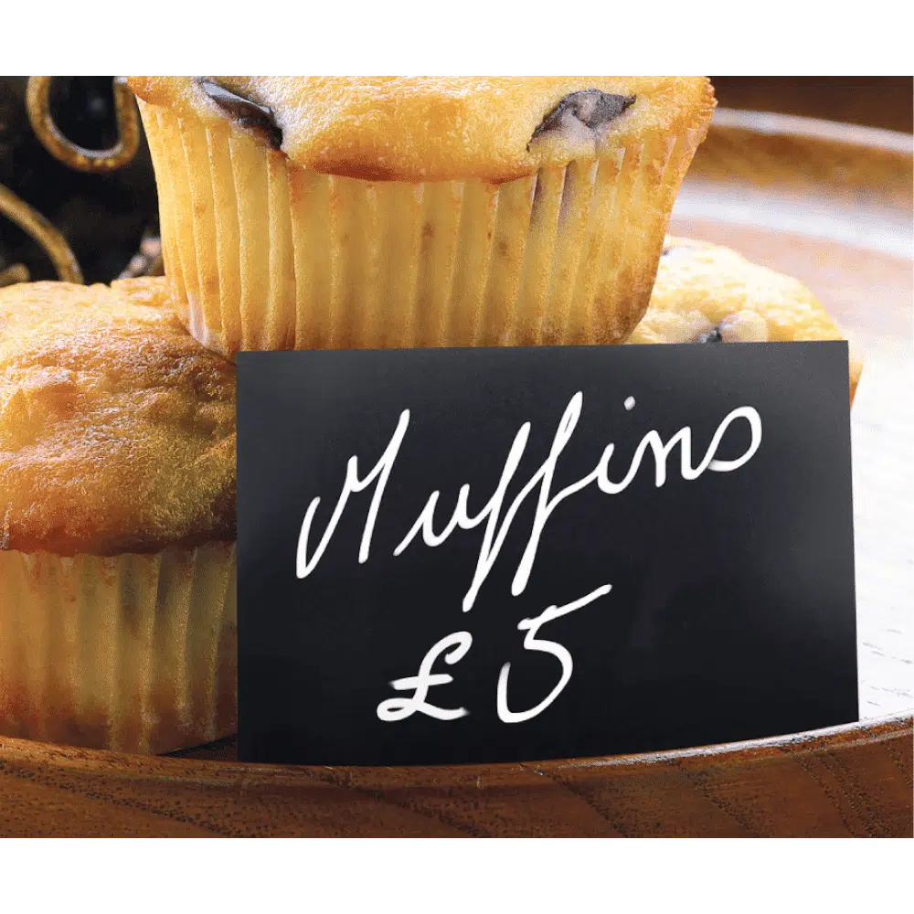 Present your buffet offerings elegantly using these tickets. They are compatible with liquid chalk pens and can be easily wiped clean with a gentle, damp cloth.