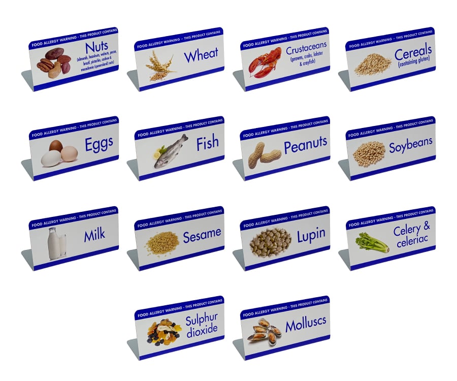 | Option | Celery & Celeriac, Cereals, Crustaceans, Eggs, Fish, Lupin, Milk, Molluscs, Mustard, Nuts, Peanuts, Sesame, Soybeans, Sulphur Dioxide, Wheat |