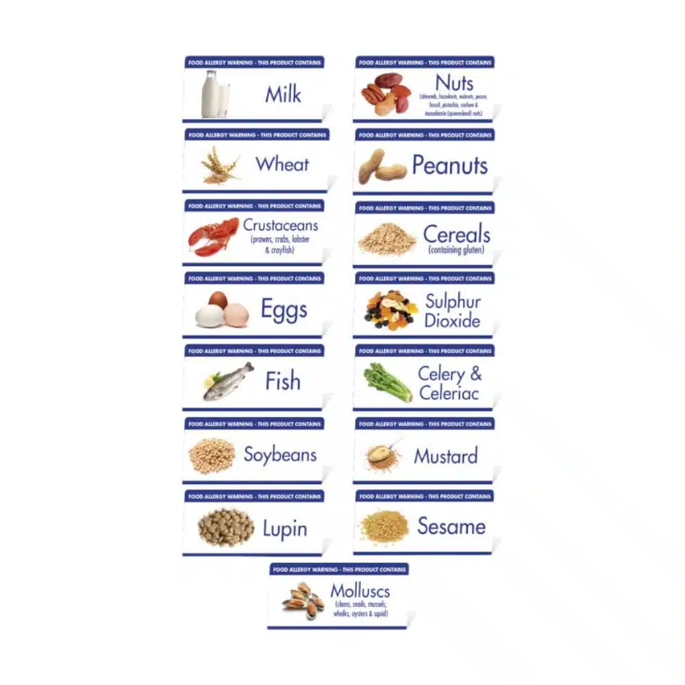 Option | Celery & Celeriac, Cereals, Crustaceans, Eggs, Fish, Lupin, Milk, Molluscs, Mustard, Nuts, Peanuts, Sesame, Soybeans, Sulphur Dioxide, Wheat |