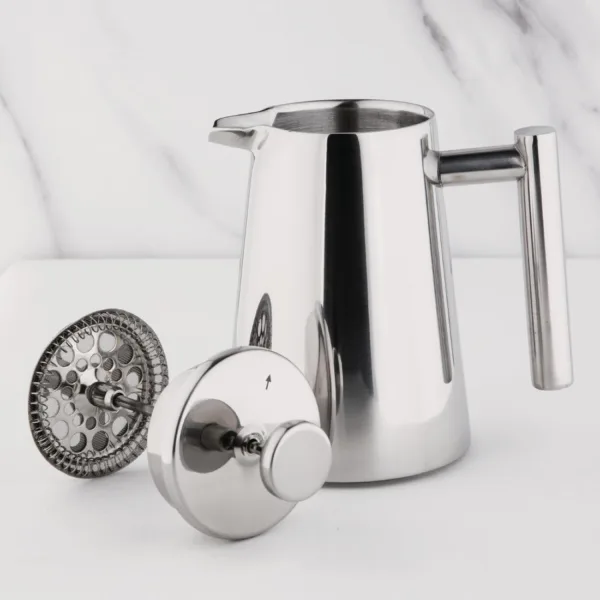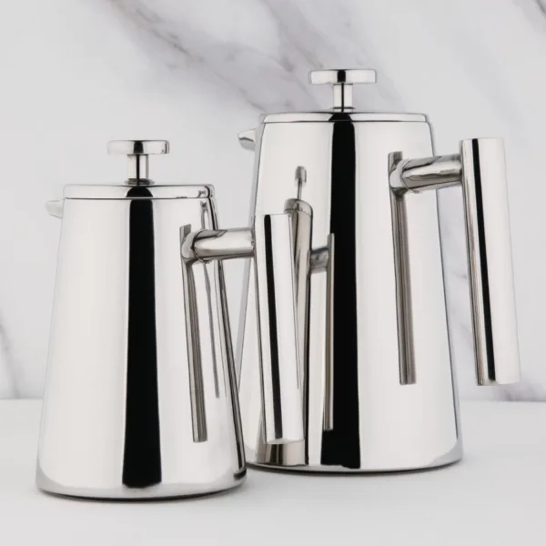 High quality stainless steel cafetiere with pourer and handle designed to ease the service.