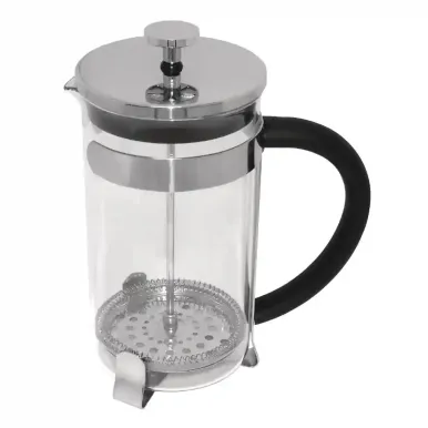 Contemporary designed cafetiere in stainless steel and strong glass.