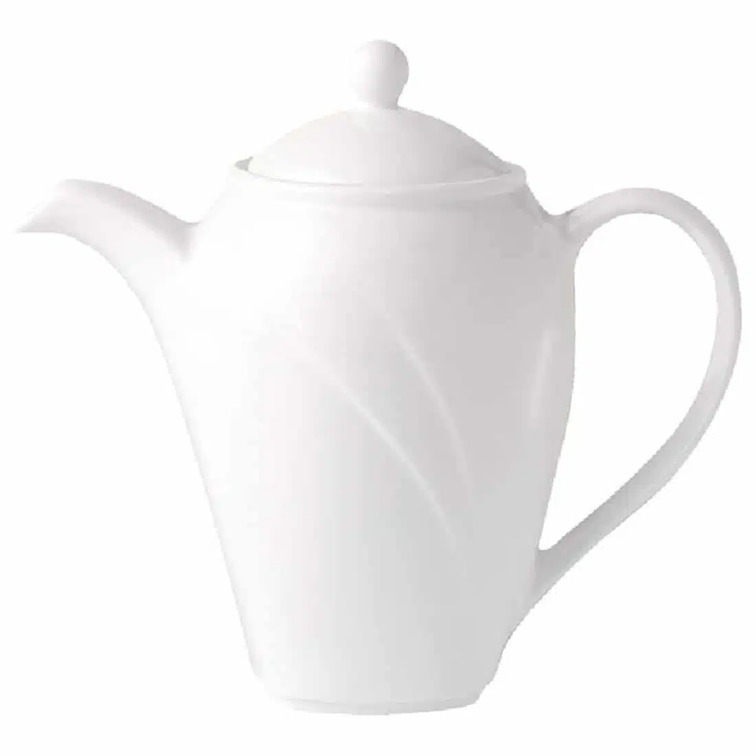 With flowing curves and a subtle embossment, the Alvo crockery range assures outstanding food presentation to complement any cuisine. This 30oz coffee pot combines the pure white delicacy and translucence of finest china with exceptional durability, with features including thermal shock and stain resistance and a robust glaze.