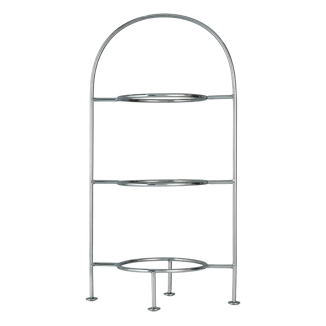 Showcase your delectable cakes and pastries on this stunning 3-tier cake stand from Artis. Featuring an eye-catching polished chrome finish, this stand brings a touch of elegance to any tabletop. Its four sturdy feet ensure stability on the table, preventing movement. Designed to fit a 240mm footed plate, it also accommodates other plate sizes, making it a versatile addition to any cafe or restaurant.