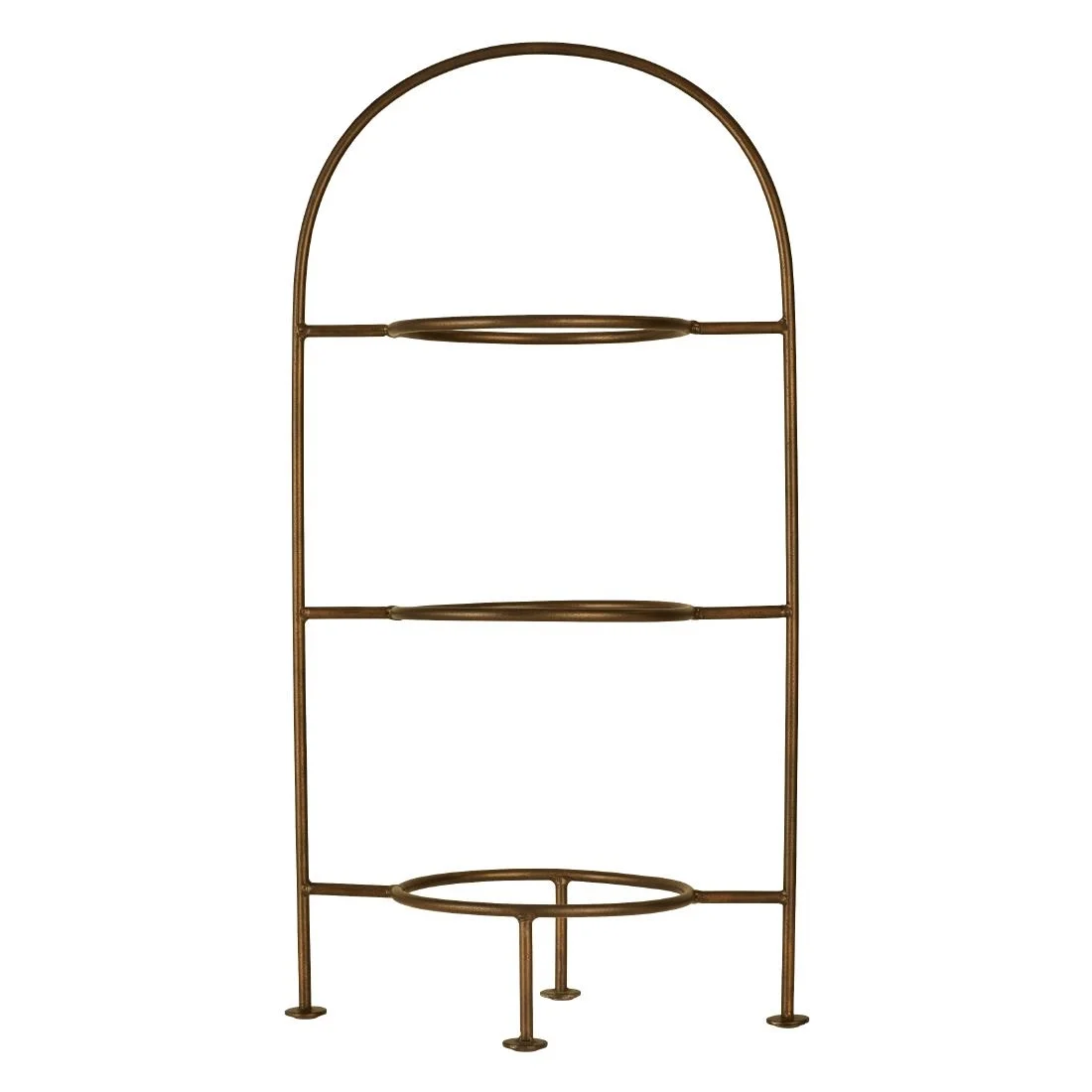 Showcase your delectable cakes and pastries on this stunning 3-tier cake stand from Artis. Featuring an eye-catching antique copper finish, this stand brings a touch of elegance to any tabletop. Its four sturdy feet ensure stability on the table, preventing movement. Designed to fit a 240mm footed plate, it also accommodates other plate sizes, making it a versatile addition to any cafe or restaurant.