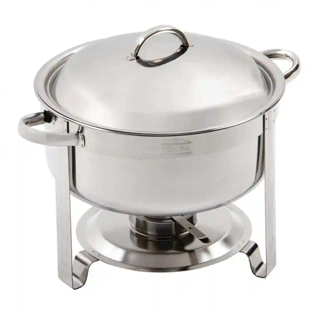 - Supplied with water pan, food pan, lid and single chafing can holder