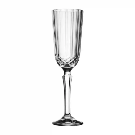 Introduce a vintage look to your bar, pub or restaurant with these Utopia champagne flutes from the Diony collection. The flutes cut glass look and faceted stem that combine for an elegant and classic look. Due to their shape, the flutes produce extra bubbles when compared to a normal glass.