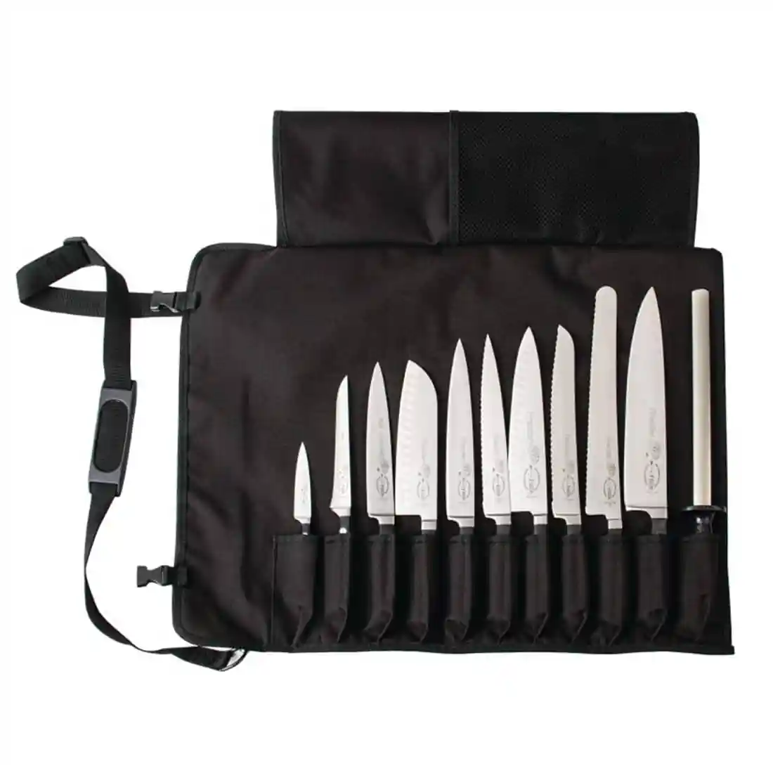 High quality textile roll bag in which to store knives, with a Dick embroidered logo.