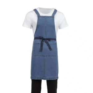 These aprons typically feature a large bib portion that covers the chest, complete with straps that tie behind the neck and waist for a secure fit. Bib-style aprons come in a variety of fabrics, from cotton and denim to poly-cotton blends and more.