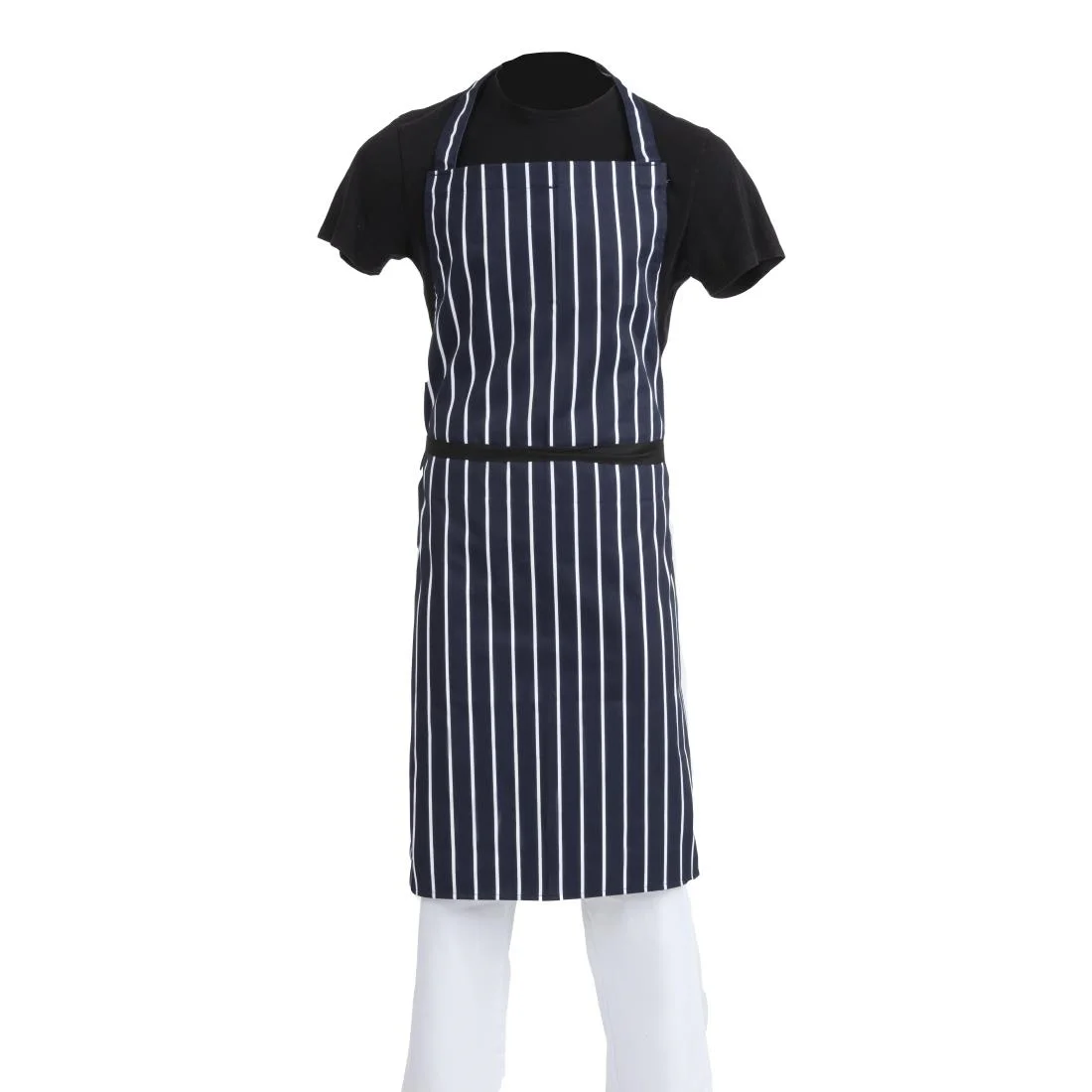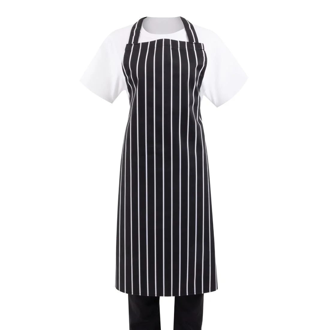 A truly classic apron for all types of food service areas, the Whites butcher's stripe bib apron combines excellent protection with a stylish, traditional look.