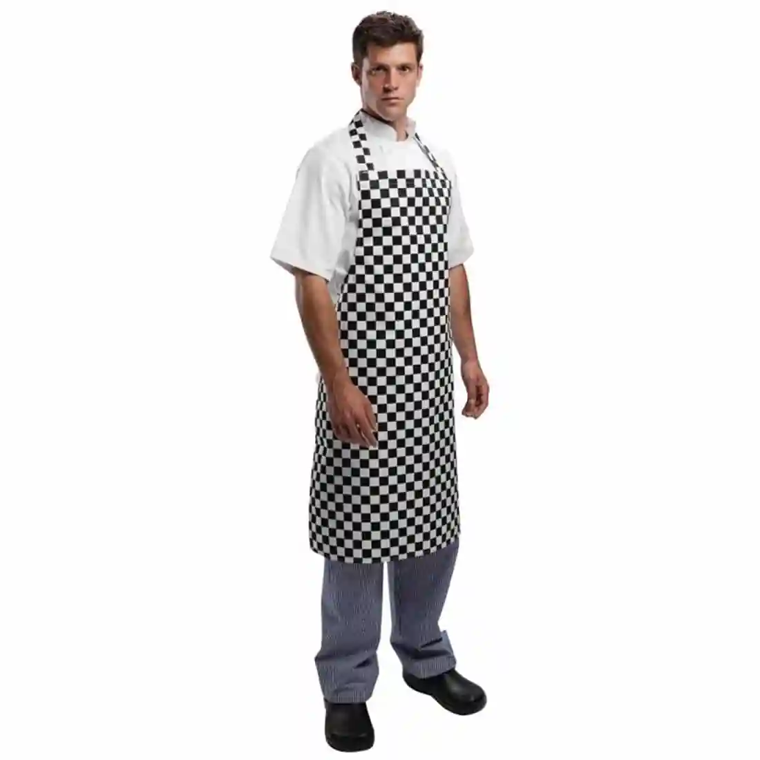 The Whites Bib Apron with Black and White Check is the ideal apron for both front and back of house catering environments.