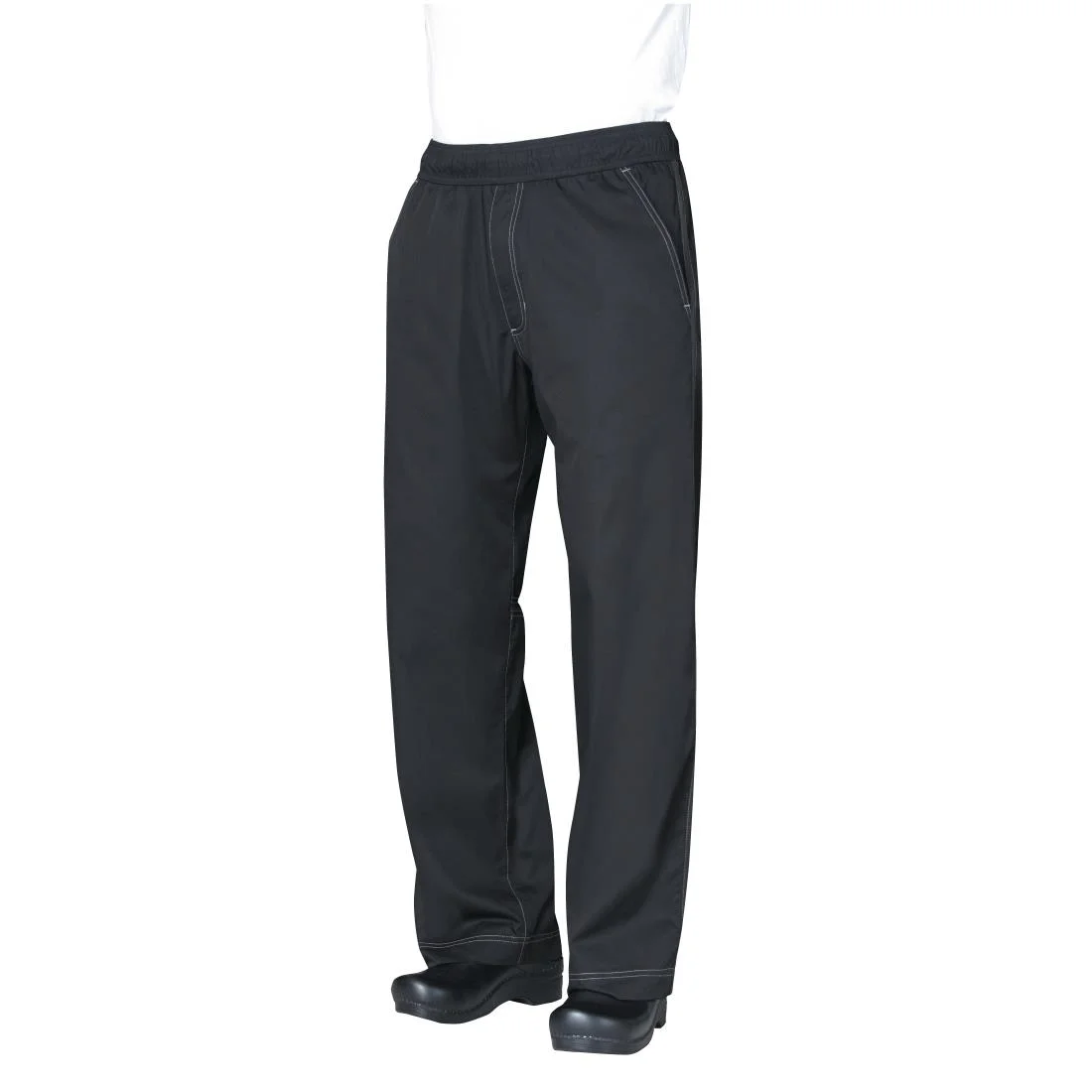 Simple, stylish and durable unisex chef trousers with an extra wide waistband for a more comfortable fit.