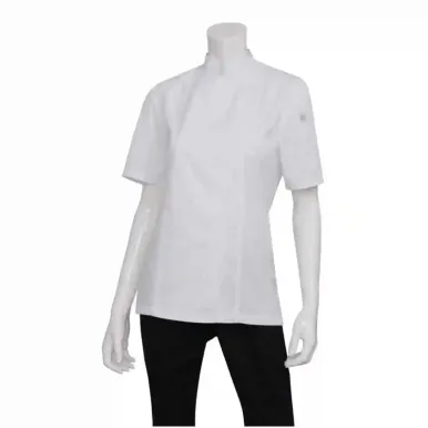 The Chef Works Womens Springfield Zip Chefs Jacket features a cut to flatter the female body, giving you a jacket that not only gives you professional quality, but also style that you can be proud of. A polycotton lite twill fabric gives the jacket a lightweight design that makes it comfortable to wear, even at the end of a long shift. The 2-way zip gives you the option to open the jacket from the top or the bottom. Cool Vent™ side panels ensure you stay cool and comfortable when the kitchens heat up, allowing you to keep working at your best and in maximum comfort. To help you keep your jacket in pristine condition, it has a apron holder loop on the back of the collar, stopping it from sliding off or irritating your neck.The Springfield has a flattering cut and design, with side seam slits and short sleeves that ensure you look and feel great when working in a fast paced kitchen.