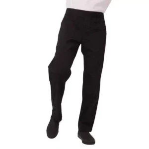 Traditionally designed chefs trousers for all day comfort in the kitchen. Easy laundering with no buttons to break.