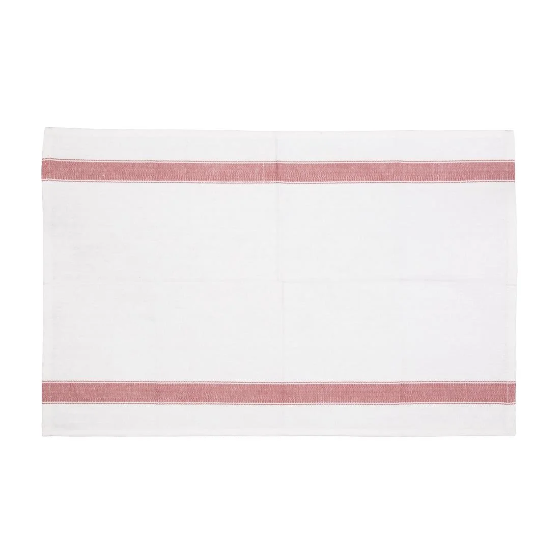 Red Border. Linen union. Size: 30 x 20". Sold Singly.