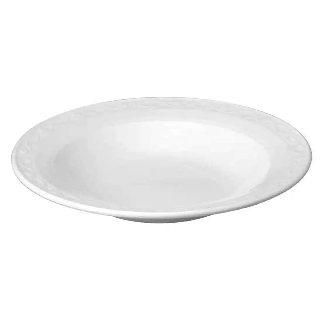 The Chateau collection features a contemporary elegant shape, delicately embossed with an Art Nouveau inspired intertwining leaf pattern around the rim. These soup bowls, as well as the full range of items available combined with the excellent durability and style; make the collection perfect for banqueting. All feature a fully glazed foot which help to prevent damage to the crockery when stacked.