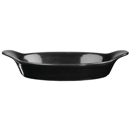 Designed to resist the stresses of all busy kitchens and catering establishments this eared, medium sized, oval pie dish is chip resistant and offers excellent heat retention.