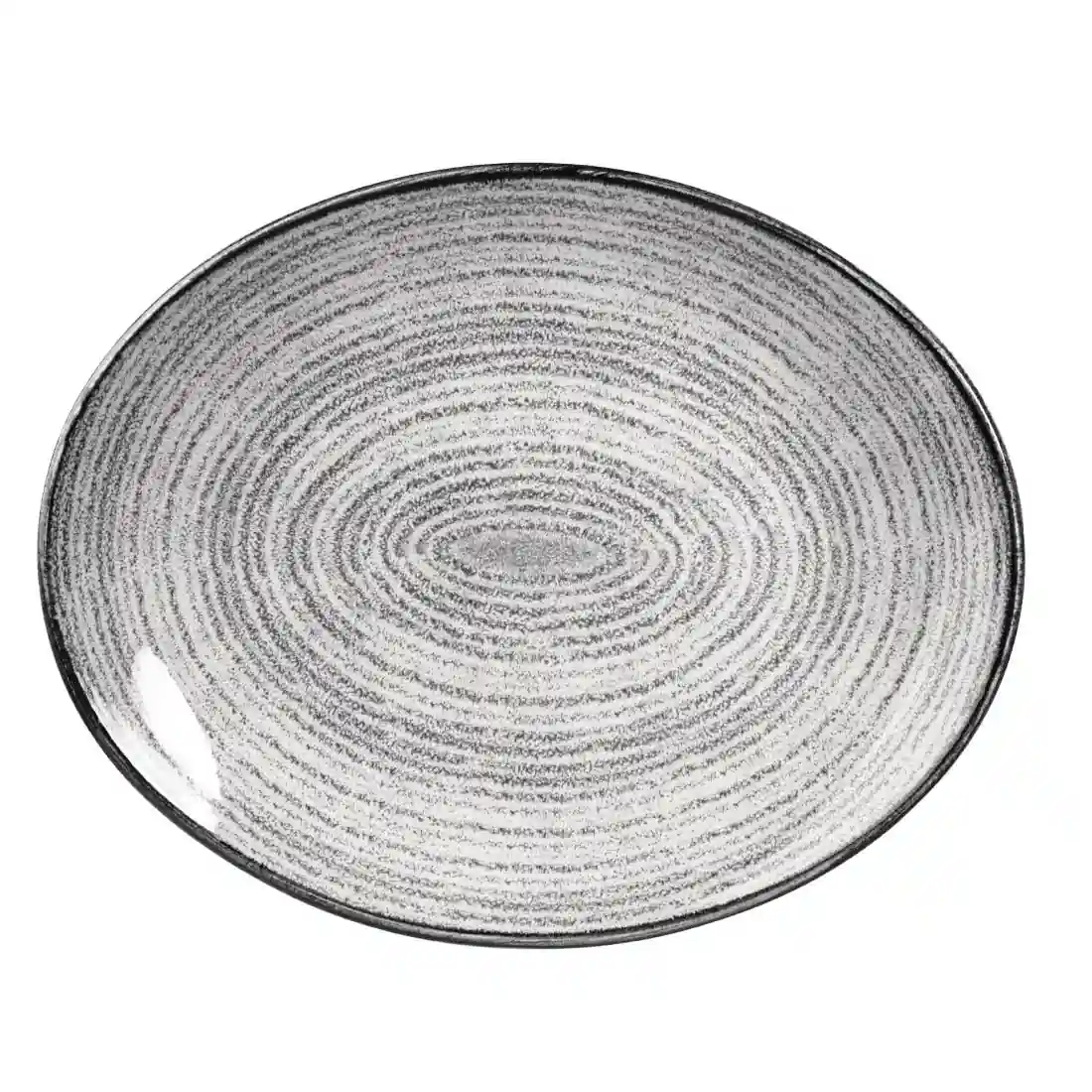 Allow the subtle Stone Grey colour of this coupe plate to complement your fresh homemade food. The oval design is applied as part of the under glaze to protect from damage and fading so that the plate can be used in busy restaurants with no risk of losing its colour. For a touch of individuality, each plate has a hand painted band around the rim.