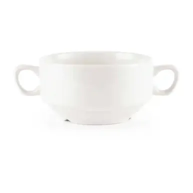 Durable yet contemporary handled soup bowls by Churchill’s Whiteware range, classic understated elegance made specifically to withstand the rigours of the catering industry. Each piece is super vitrified, fired at a high temperature over two days to ensure strength and durability. All are edge and rim chip resistant, with the importance of a glazed foot to protect against scratching and metal marking whilst providing the benefit of a more hygienic base.