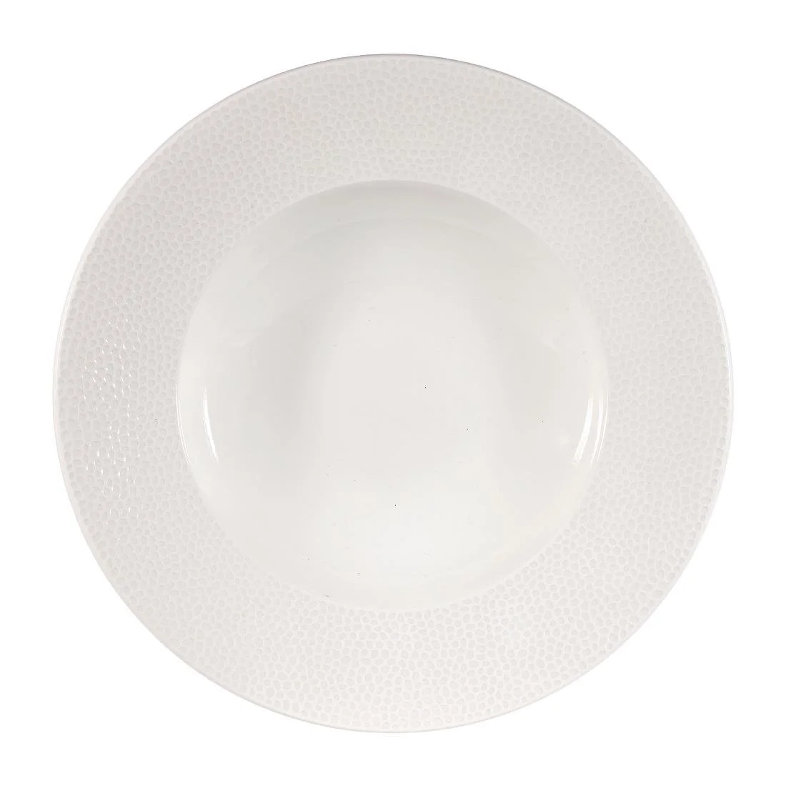 Churchill Isla White Wide Rim Bowl. Part of a crockery range inspired by the coast. Finished with a dappled effect. Sold in packs of 12.