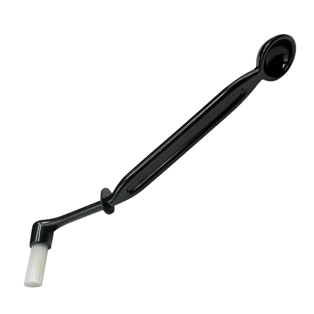 Integrated into the tool is a 3g dosing scoop, specifically engineered for use with cleaning powders such as Puly Caff. You can place one scoop of powder into a blind filter and insert it into the group head, then run the cleaning cycle; alternatively you can dissolve two scoops into one litre of hot water and soak filter holders for 15 minutes. This dual mode cleaning allows both in machine back flush and off machine soak cleaning routines.