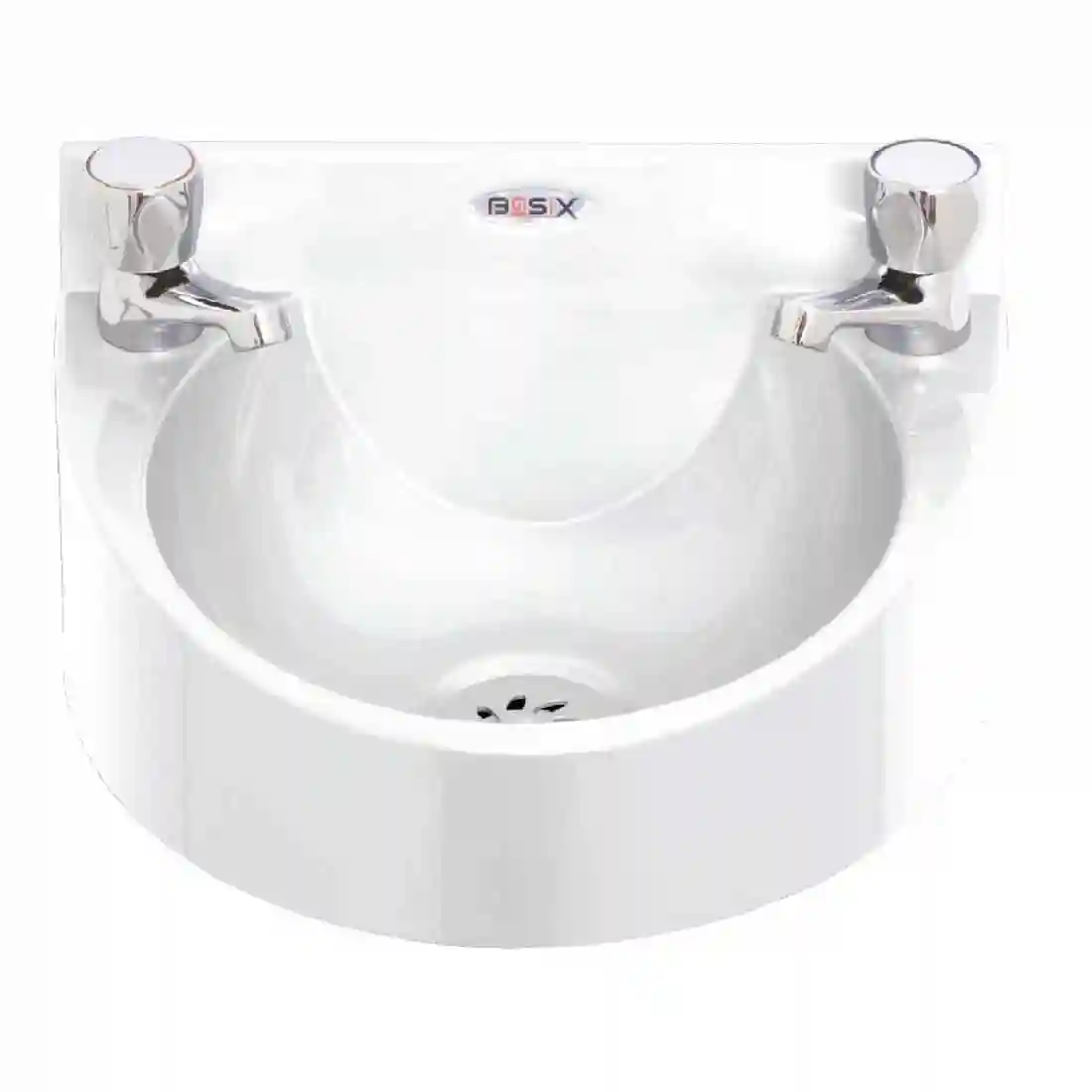 British-made, small yet robust ABS polycarbonate basin, ideal for hand-washing in commercial kitchens. Taps included with optional matching splashback.