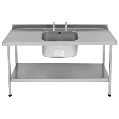 Midi Range fully pressed stainless steel sink with inclined drainers for easy cleaning. Supplied with stand, shelf, taps and waste. Delivered flat packed for easy self-assembly. Standing height 900mm. Standpipes included.