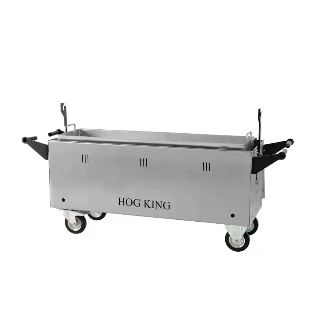 Large capacity stainless steel hog roast machine powered by propane gas, which means it is fully mobile and great for outside catering as it comes with four castors, two which can be locked. There is temperature control for easy cooking and the tray can be raised through brackets allowing easy carving and serving. The machine is capable of cooking up to 100kg of meat in one session.