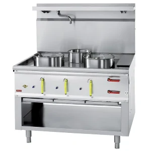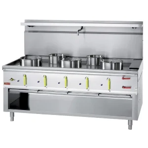 Wok burners: 3x Ø 290 mm. 21.44kW and 2x Ø 230mm. 10.13kW. Special-to-order