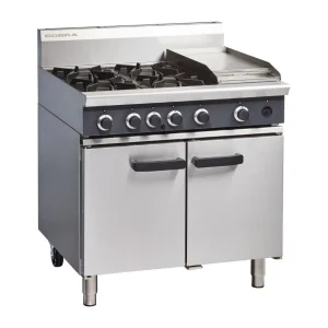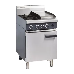 Powerful and versatile professional gas oven range combining a large 2/1GN compatible oven, two strong open burners and a 600mm wide griddle plate. Whether you’re cooking up breakfast, burgers, bolognese or bread, the Cobra is an excellent commercial solution which saves space and energy. Available in mains/natural gas and LPG powered versions. Please select from […]