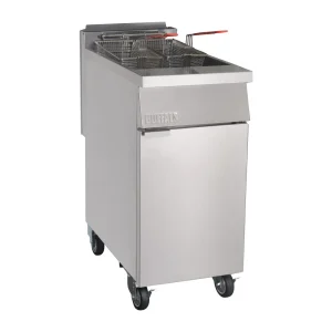 Built for everyday high-output service, the powerful Buffalo gas griddle delivers fast, even heat across a heavy-duty 15.8mm thick polished steel plate. Powerful burners create independently-controlled heat zones, so chefs can sear, sauté and hold food at the same time with consistent results. Flame failure protection and battery-operated impulse ignition support safe, reliable lighting throughout […]