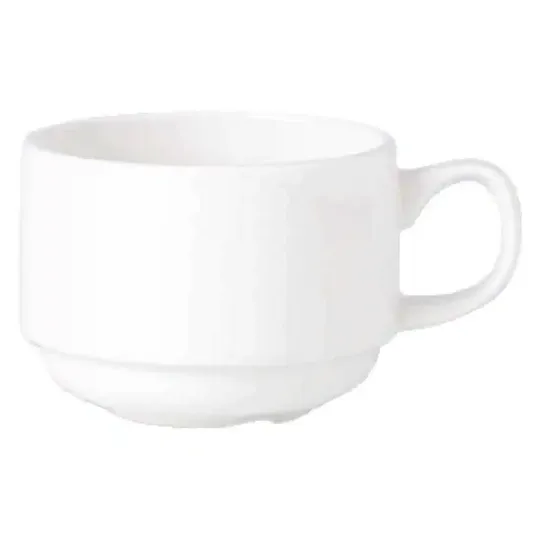 Combining excellent presentation with practicality, Simplicity White is ideal for any casual dining occasion from hotel breakfast, through cafe lunch to pub dinner. This stacking slimline cup complements all types of menu and food presentation by providing a versatile and simple backdrop. The cup is made from a strong and highly durable ceramic body, making it easily able to withstand the trials of daily use, is microwave, dishwasher and freezer proof, and has great heat retention for efficient service.