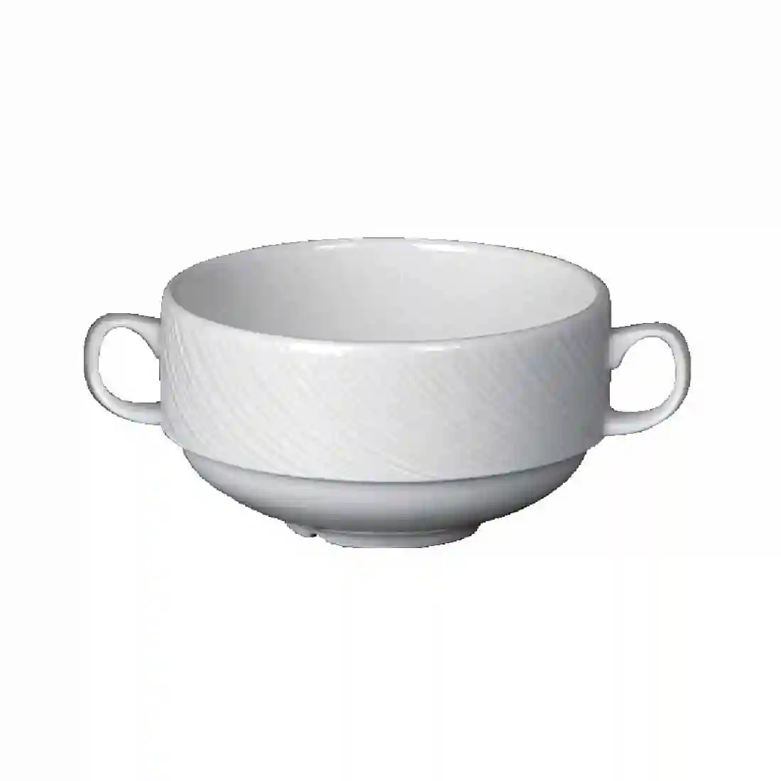 Combining contemporary forms with traditional finishing techniques, this award-winning Spyro range has been individually styled with a delicate, swirling embossed detail which lends a touch of sophistication to any professional catering environment, from banqueting to fine dining. This captivating handled soup cup ensures elegance and style, with hidden strength for lasting durability, such as thermal shock and stain resistance, as well as a robust glaze.