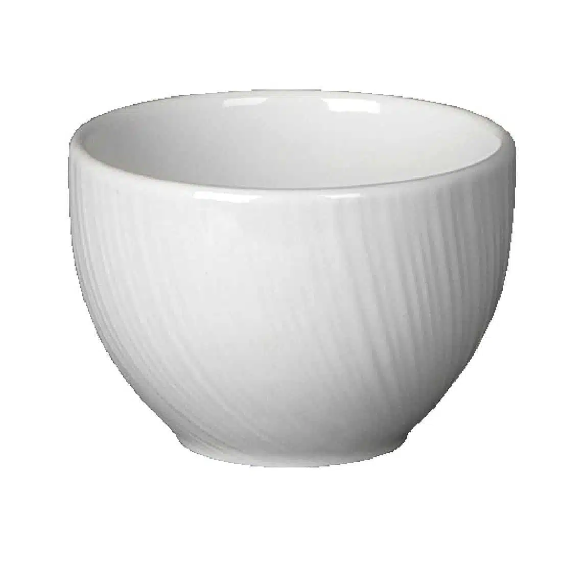 Combining contemporary forms with traditional finishing techniques, this award-winning Spyro crockery has been individually styled with a delicate, swirling embossed detail which lends a touch of sophistication to any professional catering environment, from banqueting to fine dining. This bouillon or sugar bowl ensures elegance and style, with hidden strength for lasting durability, such as thermal shock and stain resistance, as well as a robust glaze.