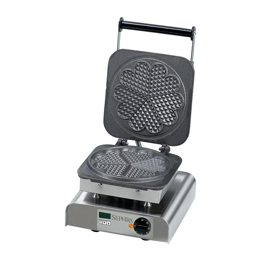 2.2kW. Makes large 5-section heart waffle per bake