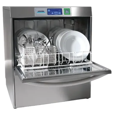 Winterhalter Undercounter warewasher. Medium size with 500 x 500 mm square basket and entry height of 310mm.