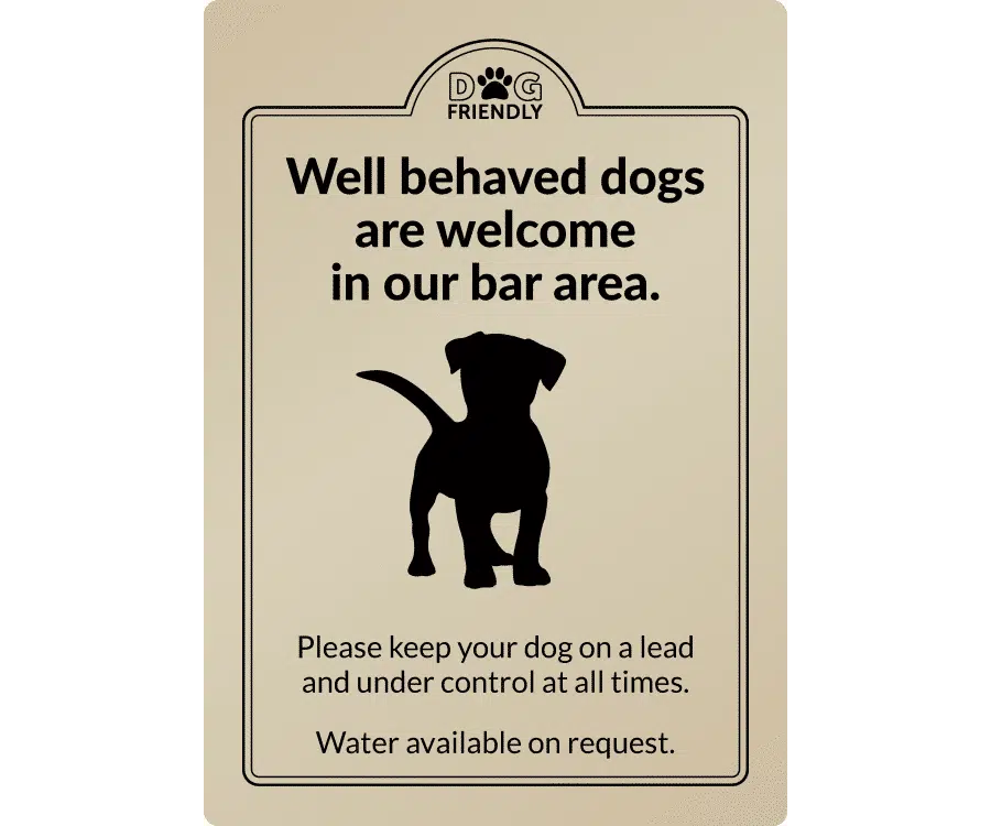 This sign can make all the difference for establishments that embrace furry companions. This sign conveys a welcoming message and sets expectations for well-behaved dogs to enjoy the space.
