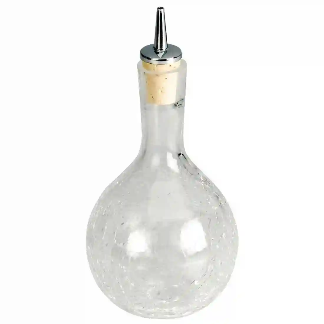 To add class and attractiveness to your bar, this bitters dash bottle is just what you need. Presented in a crackle glass design and with a 330ml capacity, you have enough room for plenty of liquid for many cocktails, with a cork and pourer allowing the contents to keep fresh until they run out. This classic bulb shaped piece is completed with a sturdy base to allow it to keep sturdy and withstand any busy bar environment.