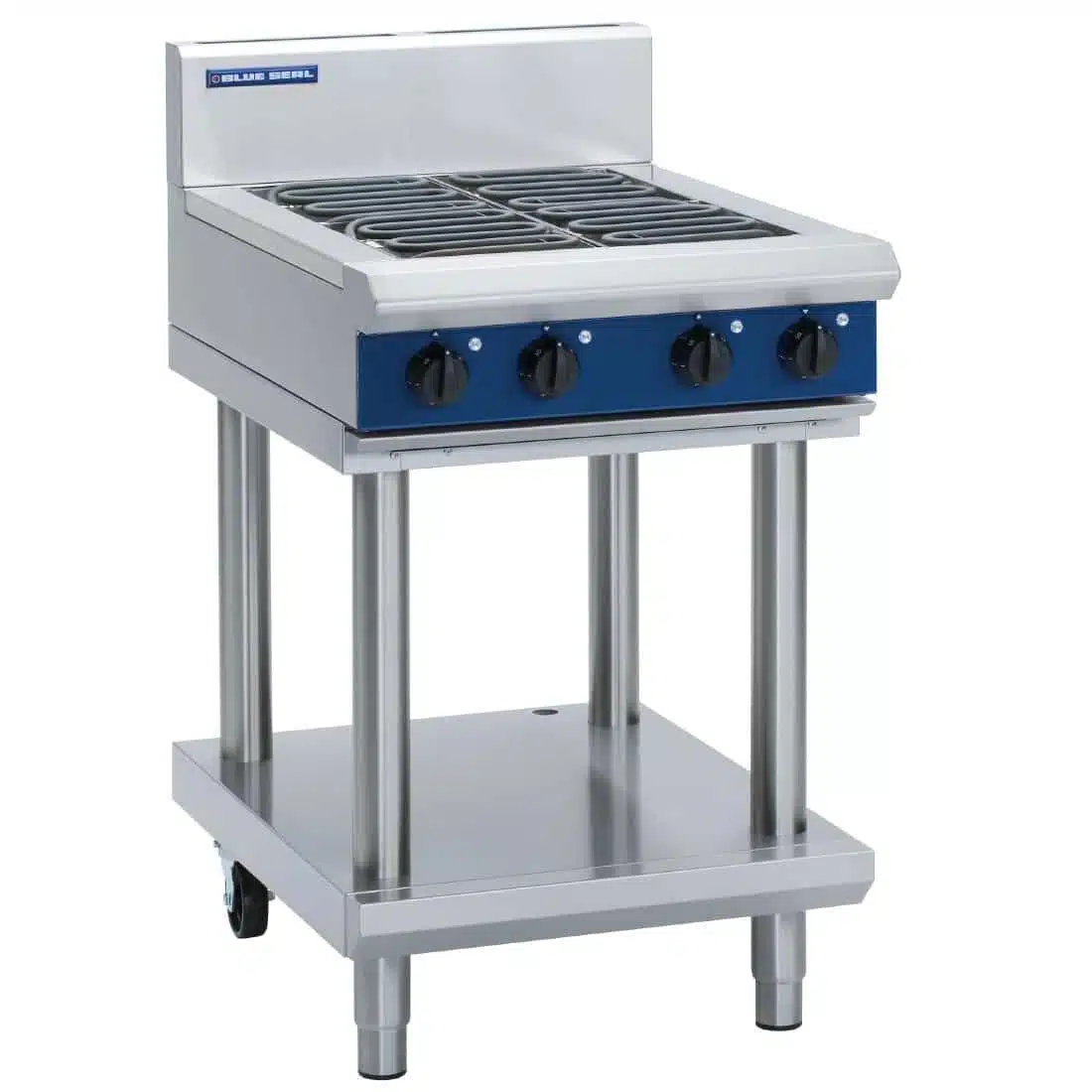 In a busy professional kitchen, a powerful and reliable cooktop is essential. The heavy duty Blue Seal Evolution Series E514D-LS electric cooktop fulfils this requirement with aplomb, as the four robust 2.4kW radiant elements and durable dial controls ensure constant, hassle-free operation. Constructed from strong stainless steel, the Blue Seal is incredibly sturdy and effortless to clean, whilst the supplied leg stand also includes a convenient undershelf for additional storage.