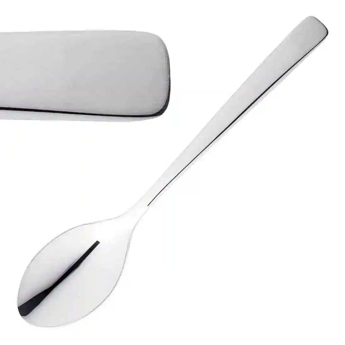 Unusually crafted and beautifully shaped with heavyweight solid handled knives which can be stood upright on the table or laid flat in the traditional manner. Crafted in the highest quality 18/10 stainless steel.